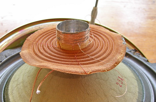 Nachdem die Spule wieder sauber gewickelt auf dem Träger war, kam tatsächlich erstmals das Gefühl für eine reelle Chance zur Wiederherstellung auf. Aber noch war das Schwingsystem nicht im Korb, noch nicht sicher, ob die Spule frei im Luftspalt laufen würde.