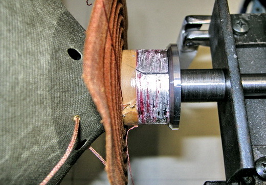 Zunächst wurde die Schwingspule wieder abgewickelt, der Träger von allen Kleberresten befreit und gerichtet. Ein zum Innendurchmesser des Spulenträgers passender Wickeldorn mußte her, anders geht es nicht. Um dieses Teil zu drehen, muß das Maß bis auf den zehntel Millimeter genau bekannt sein. Das ist aber nicht so leicht zu messen, das Material des Trägers ist sehr dünn und verzieht sich bei der geringsten Belastung.