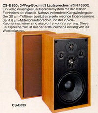 Wir erhielten einen defekten 30cm-Tieftöner, Typ 30-723F, aus einer älteren Pioneer-Box. Die CS-E 830 wurde in Deutschland bereits ab 1974 angeboten. Das Chassis könnte also etwa 40 Jahre alt sein, ein Alter das wir angesichts einiger moderner Designelemente nicht vermutet hätten. So hat z.B. der Polkern des Magnetsystems eine Kupferkappe und die Papiermembran ist beschichtet.