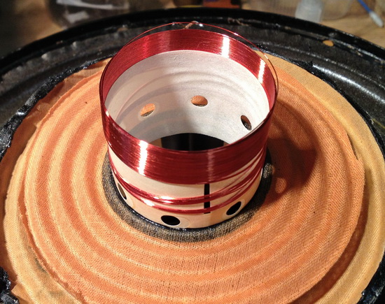 Außerdem haben wir einen speziellen Zentrierdorn drehen lassen, mit dessen Hilfe die neue Spule sauber passend eingeklebt wurde. Alles in allem reichlich Arbeit, aber es hat sich gelohnt. Der Lautsprecher konnte völlig wieder hergestellt werden und funktioniert nun wieder einwandfrei.